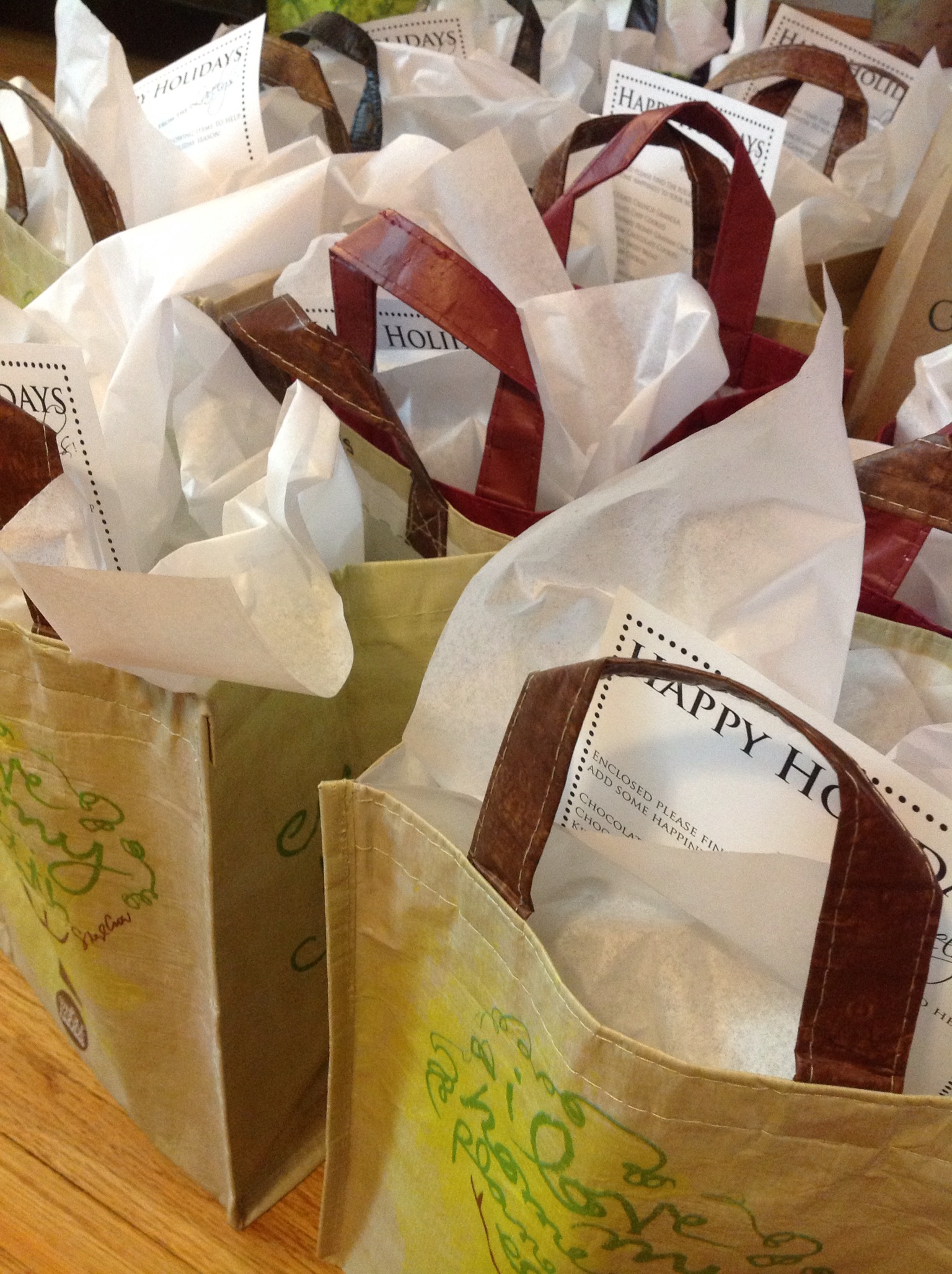 This weekend was our annual baking weekend. My husband and I bake about 9 different treats for some of our friends. We package them up in reusable bags and deliver them. If our friends want to receive treats again next year, they have to return the bags to us by December 1st. If not, they lose their spot for that year, and we choose someone new to take their place. They can always return the bag at a later date to be included in the next year.