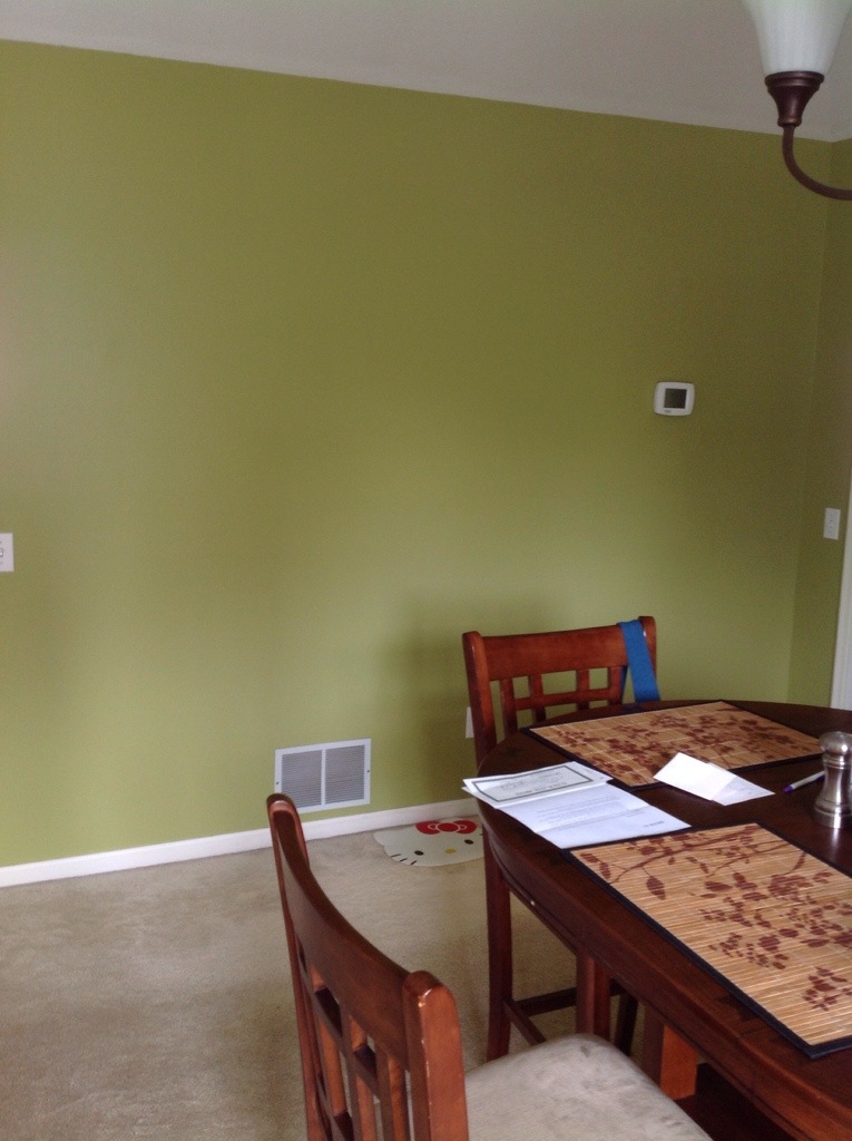 Finally last Sunday, I couldn’t stand looking it at it anymore! So I painted. Which was both good and bad. Good because it looked much better, but bad because I only had time to paint one coat. Which meant I had to squeeze painting into my already busy schedule! But I managed to do it, and I’m so glad I did because I LOVE how the dining room looks now! Below are some before, in the middle, and after pictures. (Sorry they are not in order! I’m using the WordPress App, and I have some learning to do on how to move images around after you have imported them.)